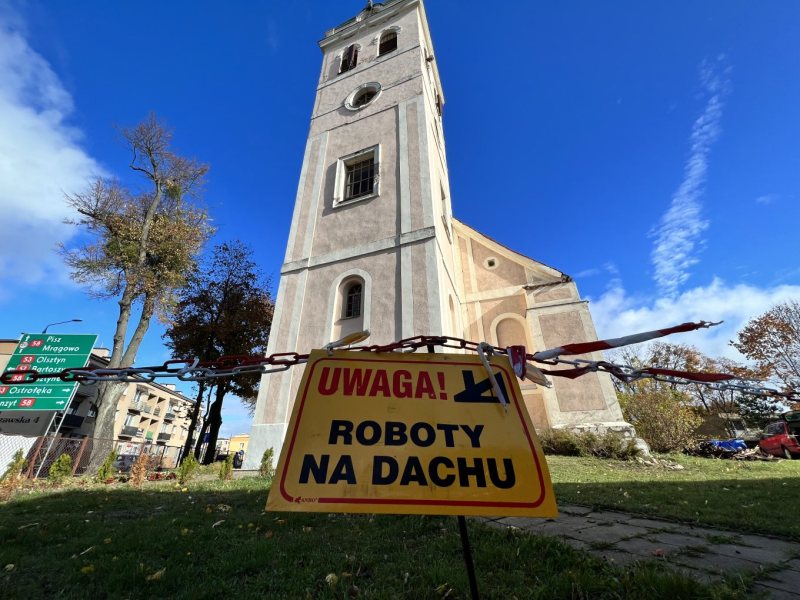 W lutym wieża kościoła została uszkodzona przez szalejąca wichurę. Odpadły z niej dachówki, które odsłonił fatalny stan całej konstrukcji dach. Kopuła została zabezpieczona między innymi plandekami i czeka na nowe dachówki, która mają pojawić się w połowie listopada. Jeśli pogoda dopisze, to jest szansa, że remont zakończy się jeszcze w tym roku.