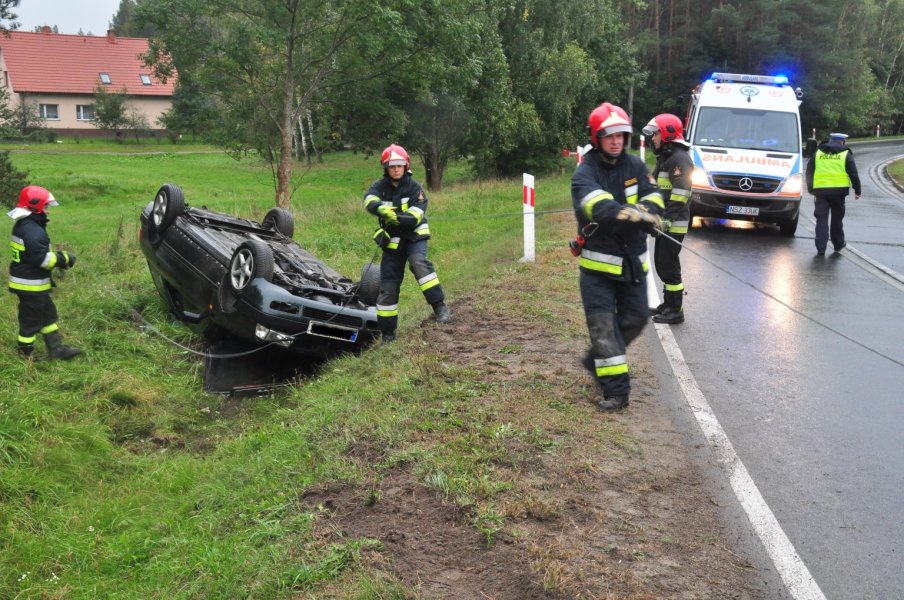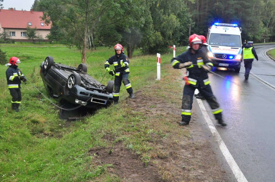 Na łuku drogi za Lemanami od strony Szczytna dachowało audi. W wypadku ucierpiał kierowca auta. Zajęli się nim ratownicy medyczni.