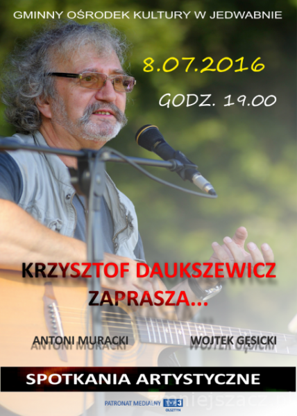 Dziś (piątek, 8 lipca) niezwykłe spotkanie artystyczne. W Jedwabnie pojawi się Krzysztof Daukszewicz. Początek koncertu godz. 19.