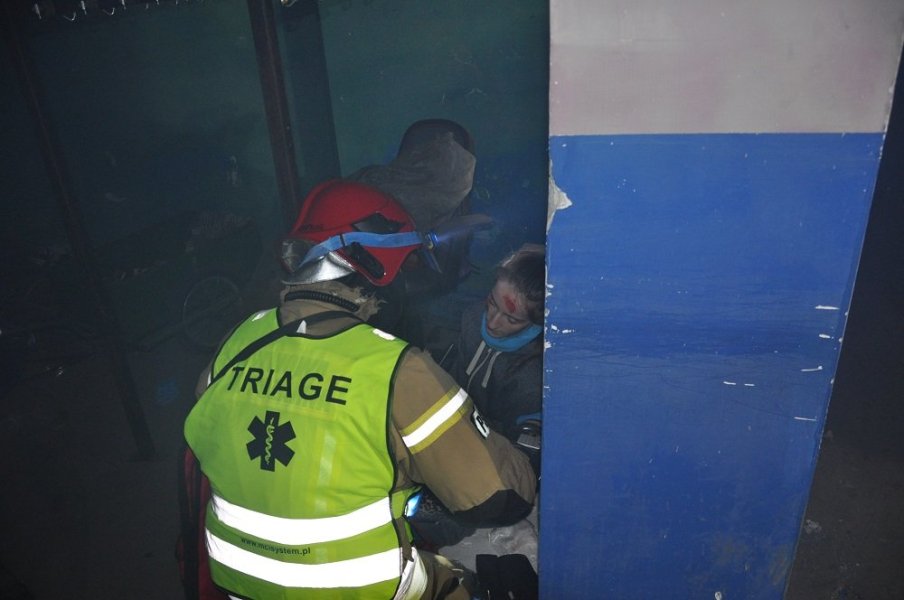 Zarówno strażacy jak i studenci ratownictwa medycznego, w pierwszej części tego założenia podzieleni zostali na 6 grup ćwiczących, które dokonywały segregacji pierwotnej na miejscu działań. Dzięki bardzo realnej charakteryzacji osób poszkodowanych, ratownicy mogli wyobrazić sobie z jakimi obrażeniami mają do czynienia. Podczas głównego epizodu, przeprowadzona została cała akcja ratowniczo-gaśnicza, w której ewakuowane osoby z miejsca zdarzenia trafiały do namiotów, gdzie zespoły ratowników medycznych prowadziły czynności ratunkowych, oraz przygotowywały poszkodowanych do przetransportowania z miejsca zdarzenia.