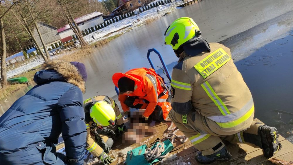 Do dość nietypowej akcji ratowniczej doszło w poniedziałek, 6 lutego w Dłużku (gmina Jedwabno). Strażacy zostali wezwani do psa, pod którym załamał się lód na jeziorze. Niestety, mimo prowadzonej reanimacji nie udało się go uratować.