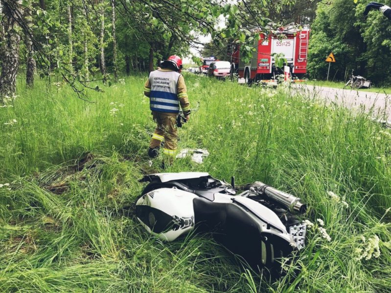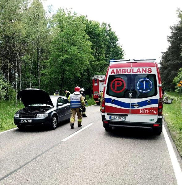 Szczycieńscy policjanci, strażacy oraz załoga karetki pogotowia pracowali na miejscu zdarzenia drogowego, do którego doszło w sobotę (06.06.20r.) około godz. 12:30, na DK-57 na trasie Piwnice Wielkie - Wielbark.