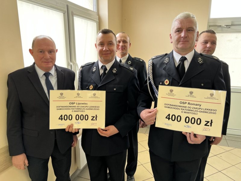 Dotacje dla OSP Lipowiec i Romany sięgają połowy wartości lekkich wozów bojowych – po 200 tys. zł dla każdej z jednostek. Gmina, która dokłada drugie tyle, ogłosiła już przetarg na zakup nowych aut.