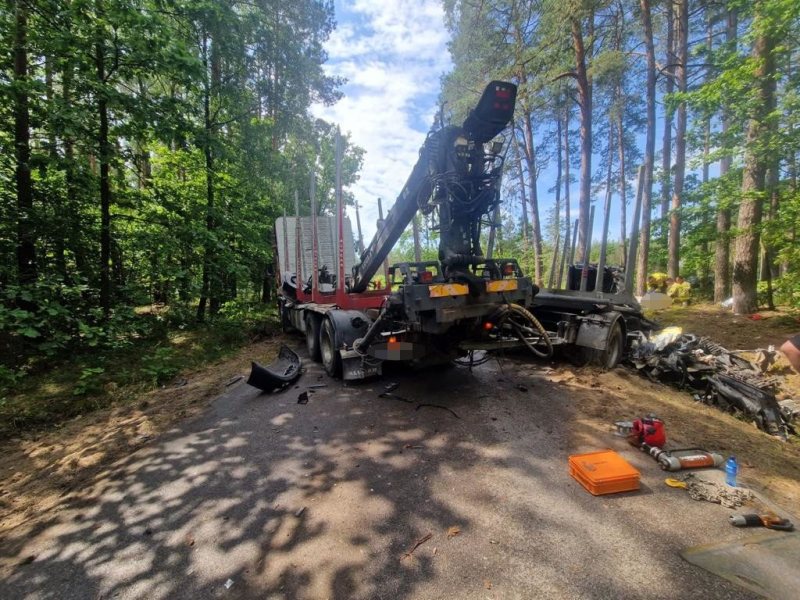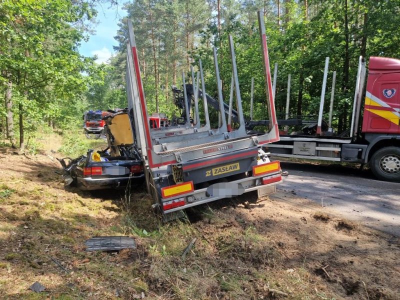Do potwornego wypadku doszło na drodze Wielbark – Mącice. Samochód osobowy zderzył się z dwoma ciężarówkami dostosowanymi do przewozu drewna z lasu. Z osobówki niewiele zostało. W wypadku ranne zostały trzy osoby. W najpoważniejszym stanie jest kobieta, która kierowała osobówką i 10-letni chłopiec.