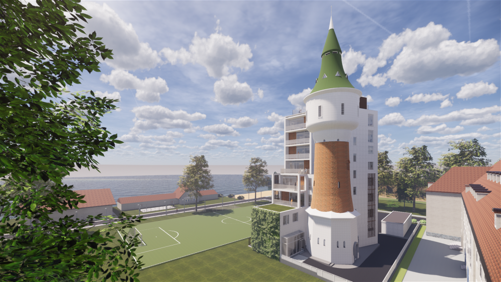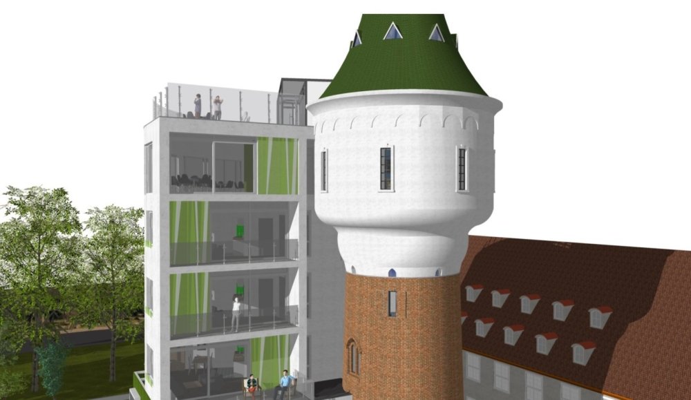 W środku wieży nie było dość miejsca, by zainstalować windę i w jakiś sensowny sposób wykorzystać kolejne jej poziomy. Praktycznie do zagospodarowania bezpośrednio w niej nadaje się jedynie obszar pod kopułą, zawierający wykorzystywany jeszcze krótko po wojnie zbiornik wody. Dziś, oczywiście, wody w nim już nie ma, ale jest on tak potężny, że pozwala na wygospodarowanie dwupoziomowego pomieszczenia o powierzchni około 50 metrów kwadratowych każdy. To najlepsze miejsce na kawiarnię plus taras widokowy. Odnowiona jest konstrukcja dachowa położona nad tym zbiornikiem tak, by była w całości widoczna. To robi wrażenie. Można jeszcze tę kopułę dachową nad zbiornikiem też podzielić stropami, ale najlepiej szklanymi, by nie tracić nic z tego wrażenia. Na tę chwilę w budynku przylegającym jest przygotowanych sześć apartamentów, które z wieżą są bezpośrednio połączone, a jej kondygnacje stanowią część tych apartamentów. Niezależnie jednak od tego, jak ostatecznie obiekt będzie wykorzystany podkreślam z pełną odpowiedzialnością, że wieża nie niszczała przez ostatnie dziesięciolecia. Jestem natomiast niemal pewien, że gdybym jej nie nabył i nie zabezpieczał tak, jak to zrobiłem, to dziś byłaby to całkowita ruina, jeśli w ogóle jeszcze by coś z niej zostało.