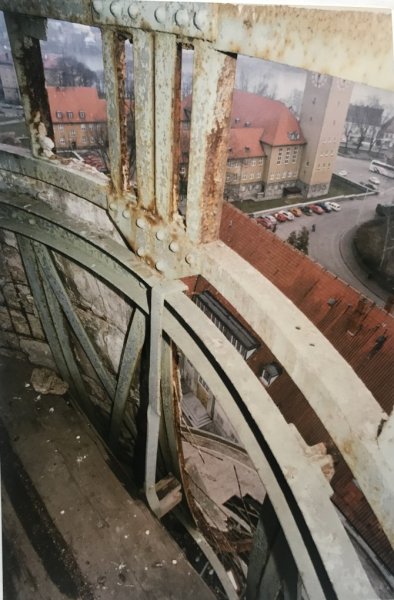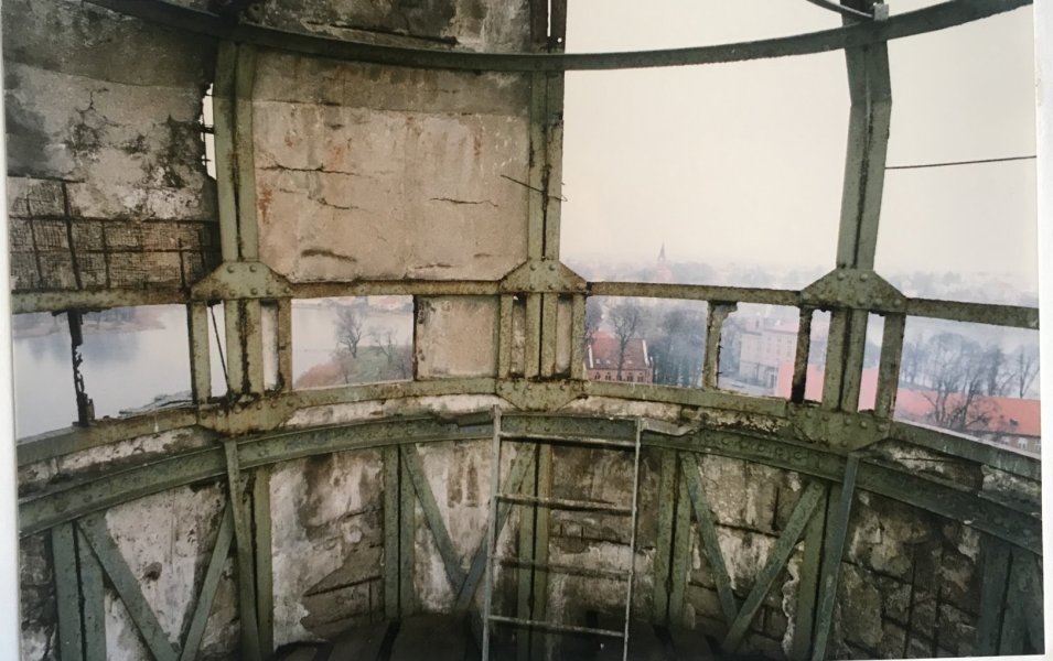 Trzeba tu oddzielić dwie sprawy. Jedna to budowa, druga - to zabezpieczenie samej wieży. Nie mogę więc zgodzić się z twierdzeniem, że ona przez ten czas była niszczona, bo nie była. Wystarczy porównać zapisy ze sporządzonego w 1998 roku orzeczenia o jej stanie technicznym z tym, jak wygląda teraz. Najkrócej biorąc, wówczas poszycie dachowe było zupełnie zniszczone i groźne dla przechodniów, a konstrukcje metalowe przerdzewiałe. Całe to poszycie zostało przeze mnie zmienione, jest nowe, dzięki czemu wieża nie niszczeje także i wewnątrz. To, co zostało dotychczas zrobione w środku, a czego na zewnątrz nie widać, to też działania, które tę wieżę zabezpieczają i – można powiedzieć – przygotowują do nowej roli, jaką ma pełnić, gdy już całość zostanie zakończona.