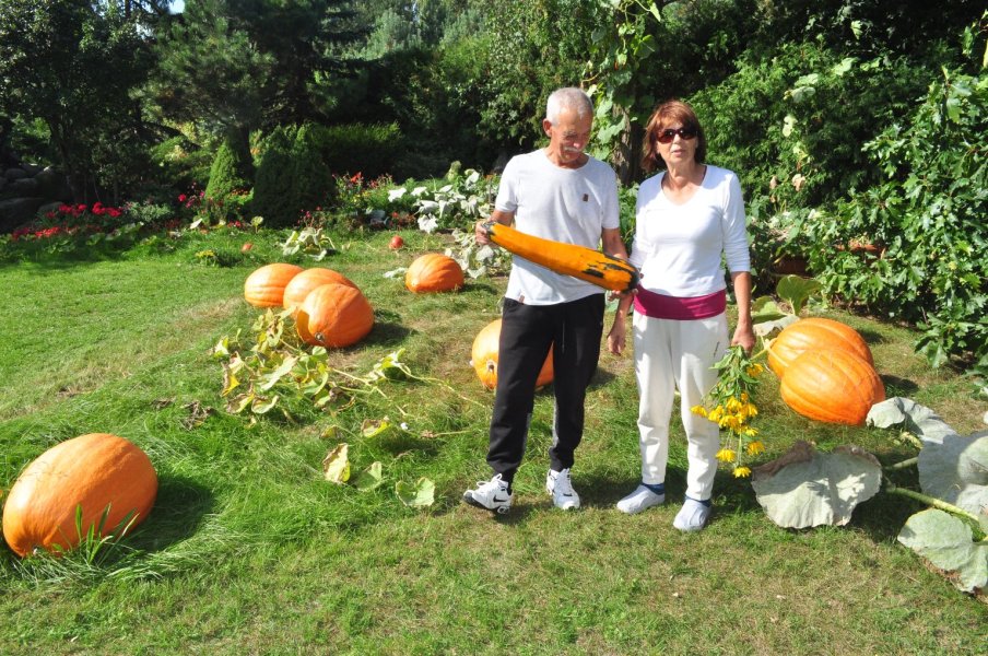 Jadwiga i Antoni Świetlikowscy z Trelkówka muszą mieć dobrą rękę do roślin. W ich ogródku wyrosło osiem potężnych dyni. Każda waży co najmniej 50 kilogramów. Co ciekawe, dynie wyrosły z jednego nasionka.
