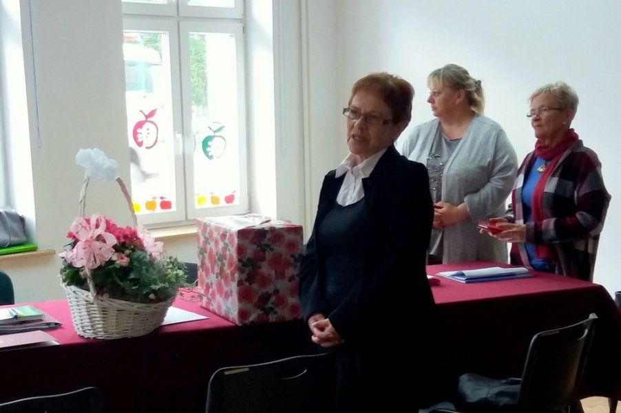 Za wieloletnią współpracę – oficjalne podziękowania, bukiet kwiatów i prezent na ręce pani Danuty złożyła przewodnicząca rady gminy Elżbieta Brzóska wraz z radnymi.