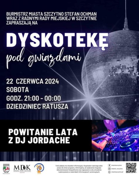 Lato zbliża się wielkimi krokami, a co może być lepszym sposobem na jego powitanie niż nocna dyskoteka pod gwiazdami? Już w sobotę, 22 czerwca, mieszkańcy Szczytna i okolic będą mieli okazję bawić się przy najlepszych hitach w wykonaniu DJ'a Jordache na dziedzińcu Ratusza w Szczytnie.