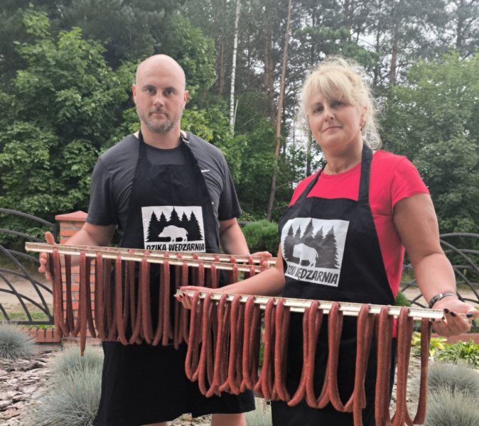 - Mój tata kocha przyrodę, naturę, wie, że to, co daje las, jest zawsze smaczne i co ważne: zdrowe – mówi pan Patryk. - Gdy byłem małym chłopakiem, zawsze dziwiłem się, gdy nasi goście, rodzina zachwycali się kiełbasą z dzika, czy szynką z jelenia. Dla nas było to coś naturalnego. Fakt, przepyszne, ale codzienne – śmieje się. - Ale dziś widzę, że dla wielu było to niedostępne i chyba wciąż jest. Trudno kupić wędliny z dziczyzny w sklepach. I zacząłem myśleć, że może to jest idealny pomysł na biznes. W domu rodzinnym mam tatę, mamę, którzy już takie wędliny robili. Dokupiłem sprzęt i pod ich okiem zacząłem eksperymentować. Jeszcze pracując u innych zrobiłem niewielką partię wędlin. Rozeszła się w mgnieniu oka wśród rodziny i znajomych. Mama Barbara pomogła mi w tej produkcji. Do tej pory pomaga. Jest takim moim kierownikiem do spraw wszystkich – uśmiecha się pan Patryk. - Ma doskonałe wyczucie smaku.