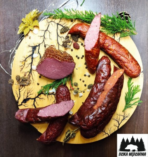„Dzika Wędzarnia” wyspecjalizowała się w produkcji kiełbas z dzika i jelenia, kabanosów z mięsa tych zwierząt, szynce z jelenia, smarowidle z jelenia w słoiczku. - Moje specjalności, naprawdę wyjątkowe, których receptur nigdy nie zdradzę, bo długo do nich sam dochodziłem, to kiełbasa długo dojrzewająca z jelenia z pistacją oraz salami z jelenia z czarną truflą – mówi z dumą pan Patryk. - Są naprawdę rewelacyjne. Mogę każdemu polecić je w ciemno. Zapraszam do skosztowania i zakupu.