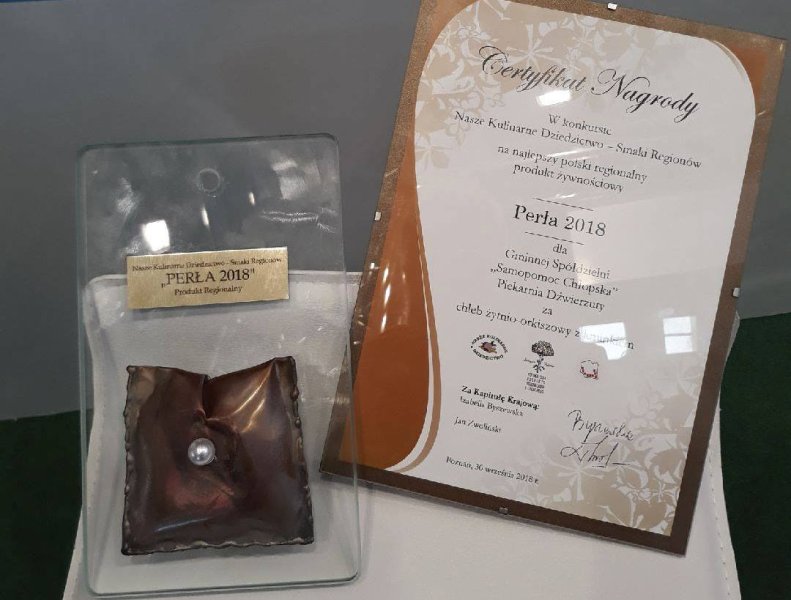 Chleb żytnio-orkiszowy z kminkiem, produkt piekarni GS w Dźwierzutach to perełka z... „Perłą”. Taką nagrodę dzieło dźwierzuckich piekarzy otrzymało w Poznaniu.