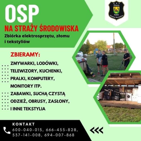 Akcja trwa od roku, a do tej pory druhom z Olszyn udało się zebrać ponad 47 ton starego sprzętu. Dzięki tak wielkiemu zaangażowaniu druhowie zajmują dziewiąte miejsce w kraju. W tegoroczne wakacje strażacy biorą udział w konkursie na najaktywniejszą jednostkę biorącą udział w akcji OSP na Straży Środowiska.