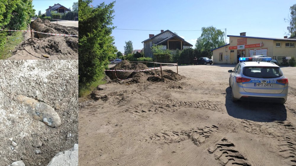 Teren zabezpieczyli policjanci. Funkcjonariusze będą pilnowali znaleziska do godziny 15, bo wówczas mają pojawić się w Szczytnie saperzy.