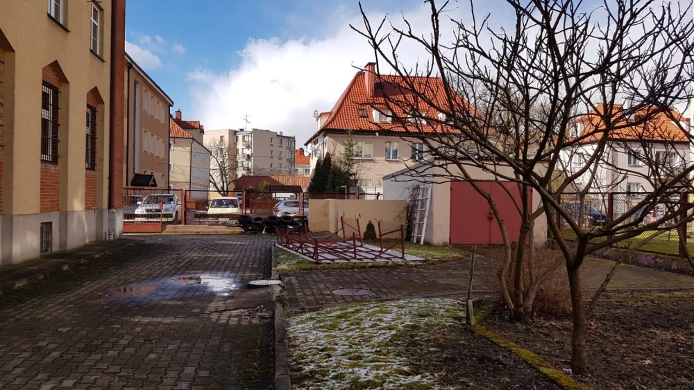 Do bardzo groźnego incydentu doszło na ulicy Chrobrego w Szczytnie. Silny podmuch wiatru zerwał metalową konstrukcję dachu znajdującego się tam śmietnika. Potężny element wzbił się w powietrze i wylądował na dachu pobliskiego garażu.