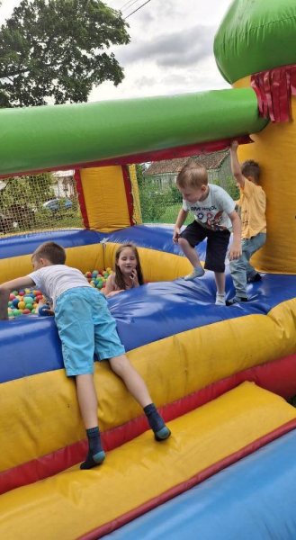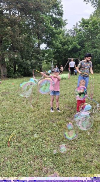 Dla dzieci przygotowano mnóstwo atrakcji: dmuchańce, gry, zabawy, a także wspólne ognisko i lody rzemieślnicze. Nie zabrakło też pysznych ciast i słodkich przekąsek, które przygotowały mieszkanki sołectwa. Dla każdego znalazło się coś smacznego – i dla maluchów, i dla dorosłych.