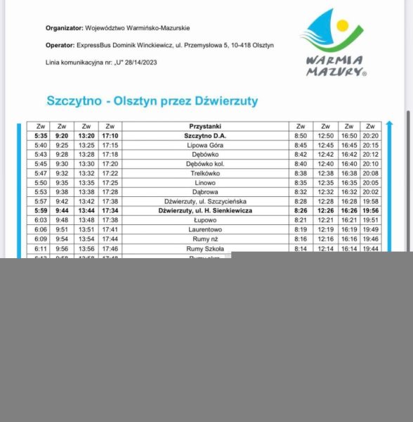 Od 2 stycznia ruszyły kolejne połączenia autobusowe między Szczytnem a Olsztynem przez Dźwierzuty. To efekt wsparcia, również ekonomicznego, Samorządu Województwa.