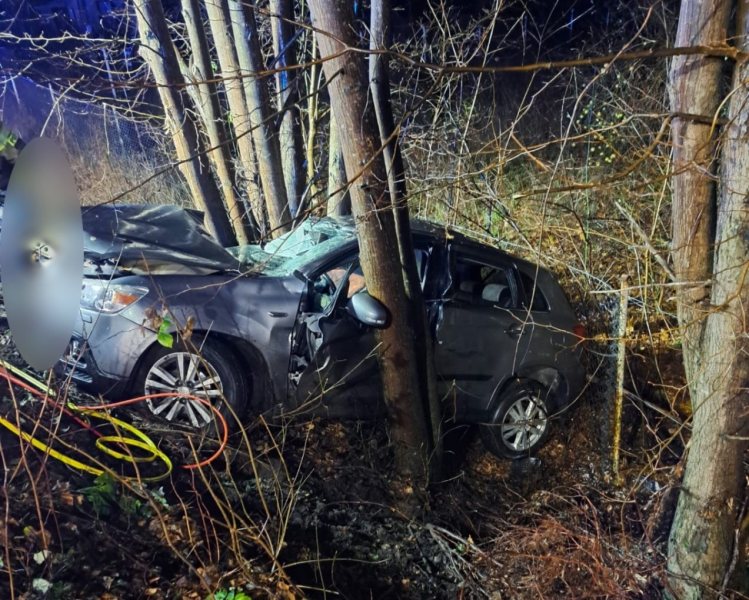 Na drodze powiatowej między Pasymiem a Jedwabnem doszło do poważnego wypadku. Mitsubishi, którym podróżował młody mężczyzna, wypadło z drogi. Kierowca jest ranny. Na miejscu pracują służby ratunkowe.