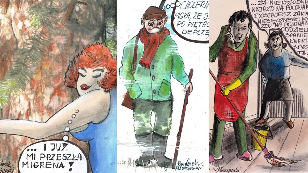 - Okej, już się robi. Za miastem skręciłem w prawo, w pierwszą drogę do moich łowisk i prułem do przodu podśpiewując: „Pojedziemy na łów, na łów, towarzyszu mój…” Za moment zrobiłem następny skrót przybliżający mnie do wieczornej zasiadki. Nareszcie pokazała się na widnokręgu niewyraźna linia lasu. Jechałem dalej. Nareszcie koniec leśnej drogi. Polana i oczekująca na mnie w oddali stara, poczciwa ambona. Samochód postawiłem tuż za rozłożystą brzozą. Pies się wybiegał i poszedł spać na tylne siedzenie. Dalej rosły buki. Dopełniłem ceremoniału przytulania, niczym za młodych lat do kochanki. O mało bym o tej ceremonii zapomniał, ale ujrzałem po drodze rudowłosą kobietę tulącą się do modrzewia.