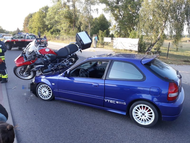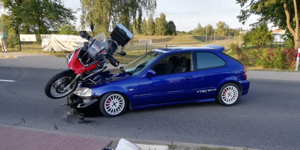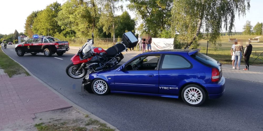 Do wypadku doszło w niedzielę, 4 sierpnia około godz. 18. - Na miejscu policjanci ustalili, że kierujący pojazdem Marki Honda Civic, 25-letni mieszkaniec gminy Jedwabno nie ustąpił pierwszeństwa przejazdu prawidłowo jadącemu motocyklowi Marki BMW w wyniku czego doszło do zderzenia obu pojazdów – mówi Anna Walerzak.