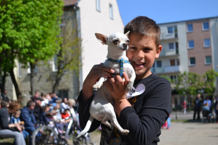 Na wystawie można też było zobaczyć psy ze schroniska „Cztery Łapy” w Szczytnie, które wciąż szukają domu. Na szczęście były i takie, które już dom znalazły, jak na przykład Pchełka, która na pokaz przybyła już ze swoją nową rodziną.