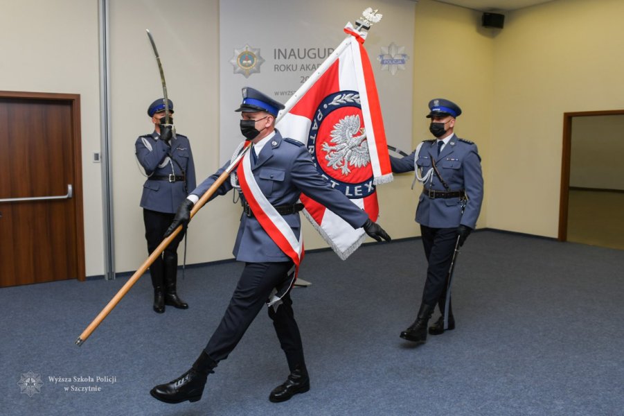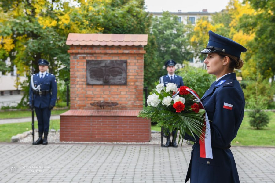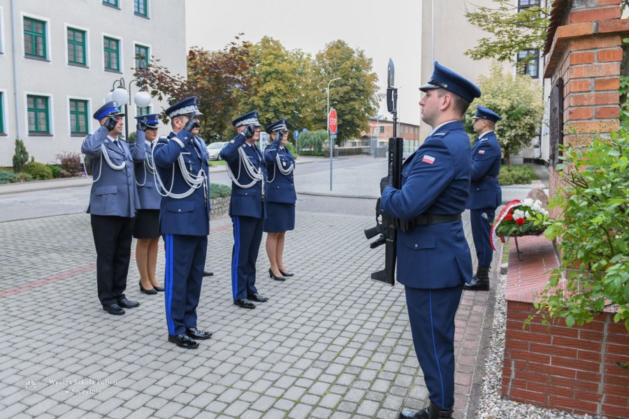 O godzinie 10:00 na Auli im. Władysława Stasiaka rozpoczęła się uroczysta inauguracja roku akademickiego 2021/2022. Tuż przed ceremonią gen. insp. dr Jarosław Szymczyk – Komendant Główny Policji, nadinsp. Dariusz Augustyniak – Pierwszy Zastępca Komendanta Głównego Policji, insp. dr. hab. Iwona Klonowska – Komendant-Rektor WSPol oraz delegacja nowo mianowanych funkcjonariuszy oddali hołd ofiarom Zbrodni Katyńskiej, składając kwiaty pod tablicą „Pamięci Jeńców Obozu w Ostaszkowie zamordowanych przez NKWD w Kalininie, Światu ku Przestrodze”.