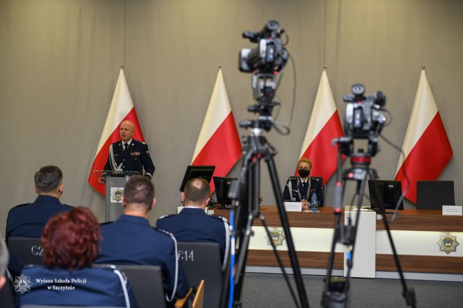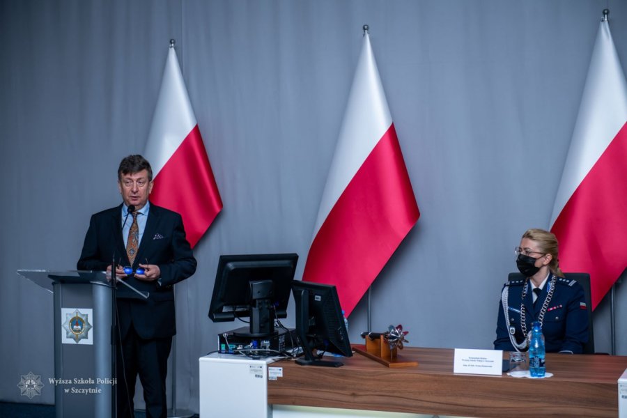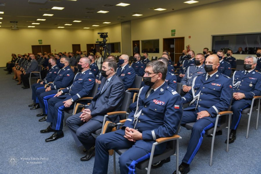 W dalszej części swojego wystąpienia Pani Komendant-Rektor przypomniała o jubileuszu naszej Uczelni – „Jubileusz 30-lecia jest dziełem kilku pokoleń nauczycieli akademickich, wielu pracowników, słuchaczy, studentów oraz przede wszystkim moich poprzedników, którzy stali na jej czele (…) Minione lata to niewątpliwie czas doniosłych osiągnięć, wśród których najważniejszym pozostaje kształcenie słuchaczy oraz studentów. Nikt z nas jednak nie spodziewał się, że ten rocznicowy czas upłynie pod znakiem zmian i reżimu wymuszonego przez pandemię. Mimo to jednak Wyższa Szkoła Policji w Szczytnie z sukcesem podejmowała i nadal podejmuje działania umożliwiające realizację naszych bieżących zadań, stawiając sobie za cel przede wszystkim zdrowie i bezpieczeństwo społeczności akademickiej naszej Uczelni”.