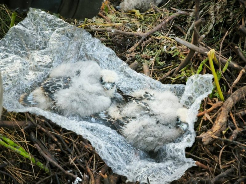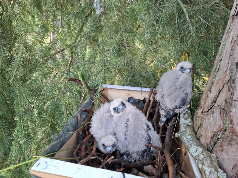 Leśniczy Michał, specjalista od ptaków szponiastych, umieścił pisklęta w specjalnej skrzynce na sośnie. Rodzice zaakceptowali nowe miejsce i nadal karmili potomstwo.