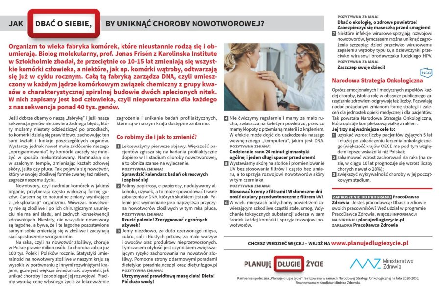 Kampania społeczna „Planuję długie życie” realizowana w ramach Narodowej Strategii Onkologicznej na lata 2020-2030, finansowana ze środków Ministra Zdrowia.