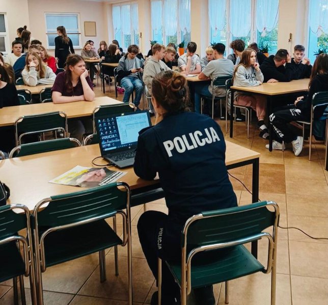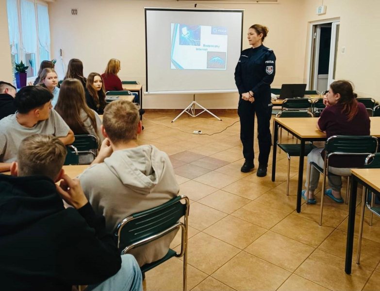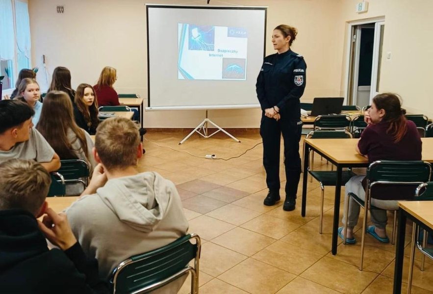 Młodzież dowiedziała się także o zagrożeniach związanych z cyberprzestępczością oraz jak unikać niebezpieczeństw, na jakie mogą natrafić w sieci.