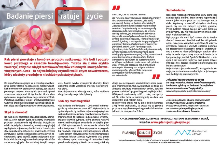 REGULARNE BADANIA ZWIĘKSZAJĄ SZANSE NA PRZEŻYCIE. Kliknij! Przeczytaj! Materiał informacyjny Ministerstwa Zdrowia.