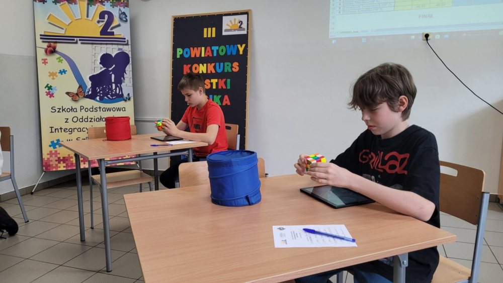 W piątek, w Szkole Podstawowej z Oddziałami Integracyjnymi nr 2 im. Wojciecha Kętrzyńskiego w Szczytnie, emocje sięgnęły zenitu. Najlepsi młodzi "układacze" kostki Rubika z powiatu szczycieńskiego zmierzyli się w dwóch etapach – eliminacjach i finale. Najszybsi dostali trzy szanse na pobicie własnych rekordów, a dwa najlepsze czasy decydowały o awansie.