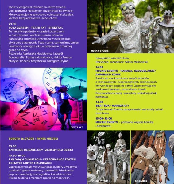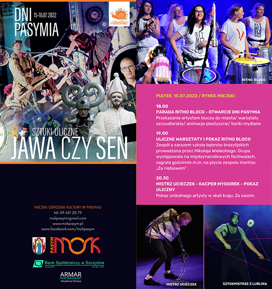 Już w nadchodzący weekend (piątek, 15 lipca i sobota 16 lipca) zjadą do najstarszego miasta w naszym powiecie, czyli Pasymia najlepsze teatry uliczne, szczudlarze i akrobaci z całej Polski. Rynek Miejski zamieni się w świat z baśni i kosmosu. Nie może Was tu zabraknąć!