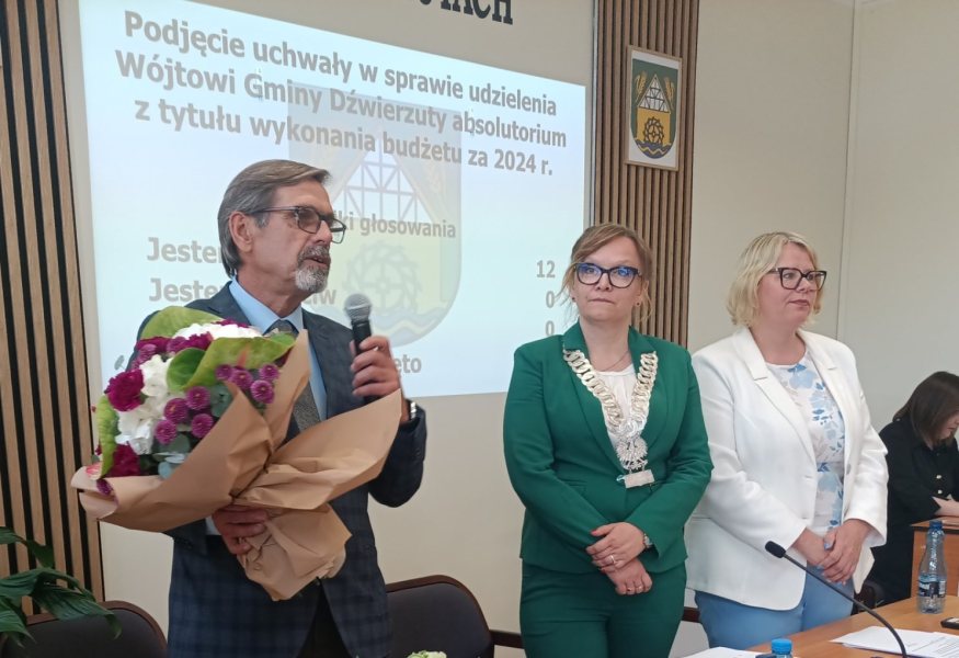 Podczas środowej sesji rady gminy (18 czerwca), debiutujący w roli wójta, Dariusz Tymiński, jednogłośną decyzją radnych gminy Dźwierzuty uzyskał wotum zaufania i absolutorium. - Z całego serca dziękuję wszystkim za okazane zaufanie. Nie zrobiłbym tego sam - mówił po głosowaniu Tymiński.