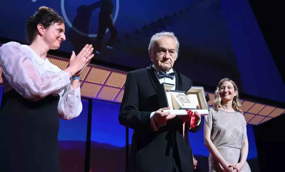 Reżyser Jerzy Skolimowski odbiera nagrodę za film "IO".