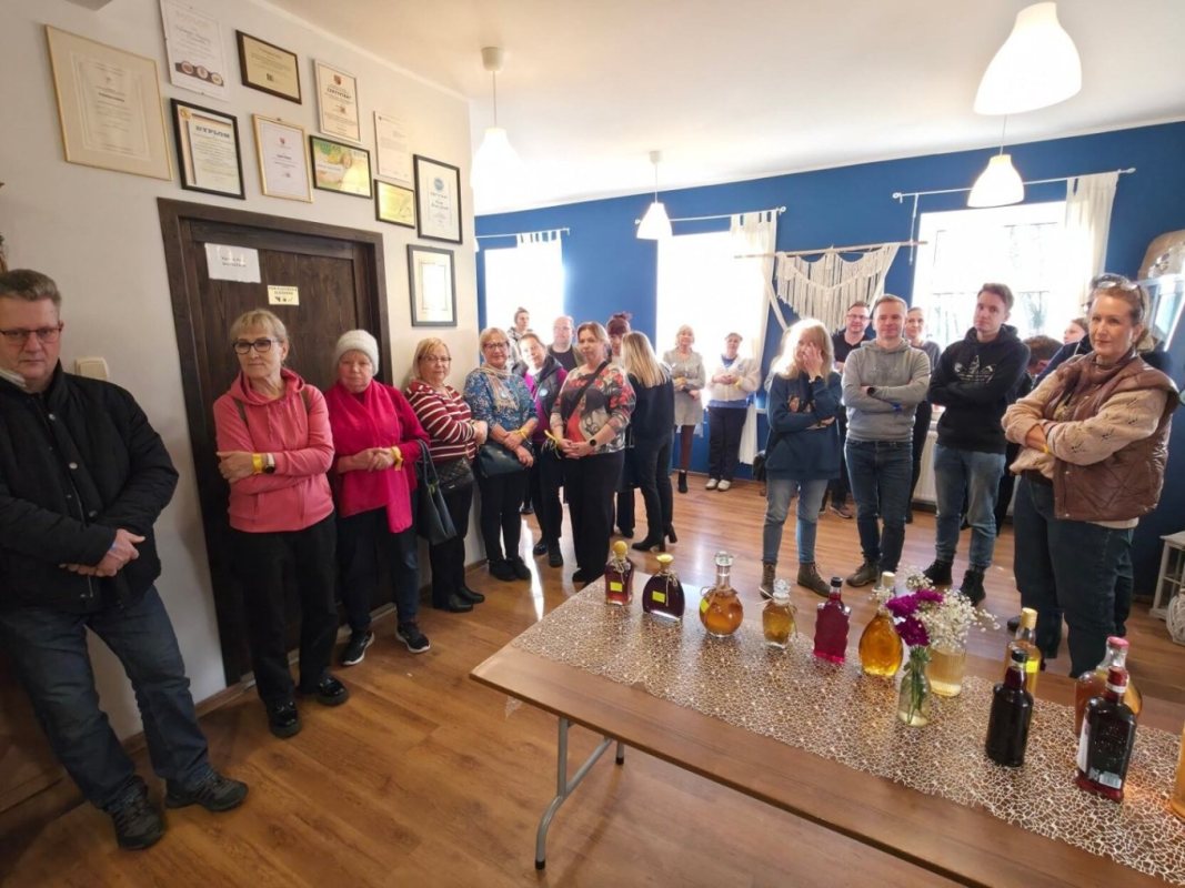 W świetlicy wiejskiej w Jerutkach pojawili się również twórcy obrazów i rękodzieła z drewna. Uczestnicy oglądali ich prace i rozmawiali o technikach oraz inspiracjach.