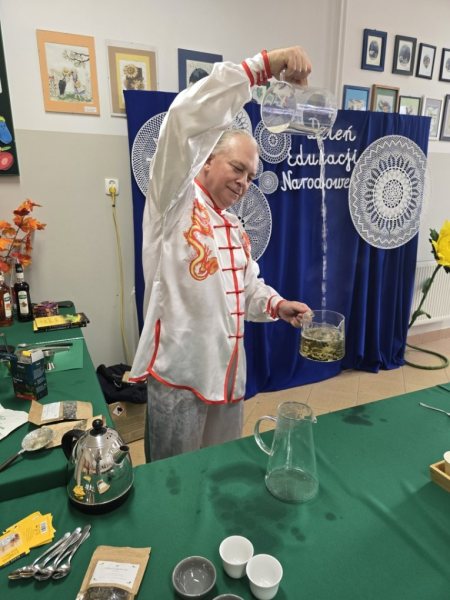 W Szymanach Dzień Edukacji Narodowej miał smak herbaty i rozmowy. Zamiast oficjalnych przemówień – uśmiech, wspomnienia i opowieści o aromatach. Nauczyciele spotkali się z Jerzym Czaplą, Mistrzem Polski Barmanów i ekspertem od herbat, który zamienił szkolną uroczystość w prawdziwą lekcję uważności – pełną pasji, zapachu i wdzięczności.