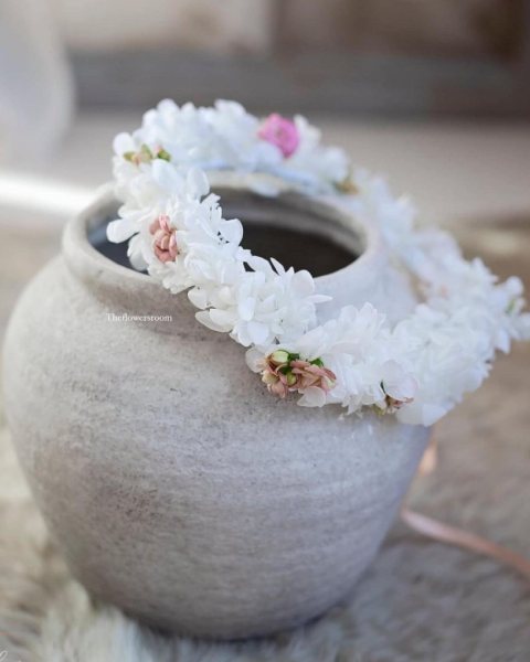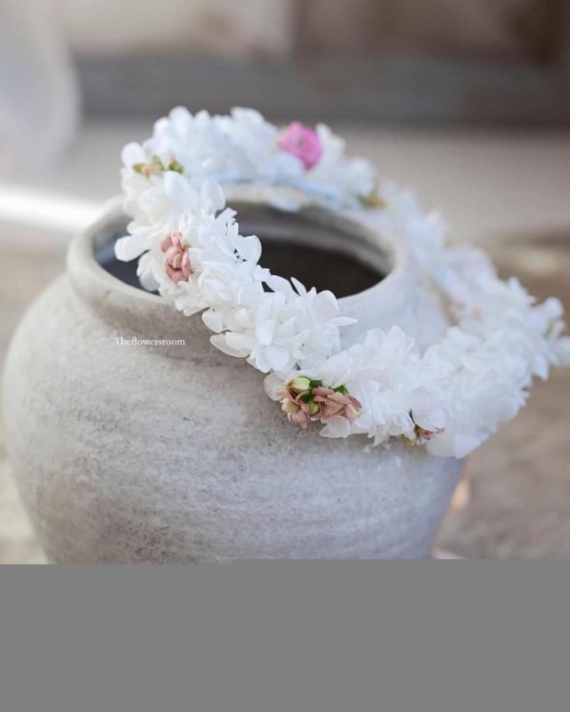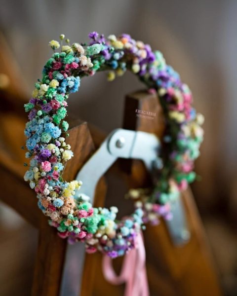 Na miejscu przygotowano dwa wzory wianków do przymiarek. To baza, która pozwala ocenić kształt, układ i efekt na głowie. Kolejne modele można wybrać ze zdjęć – kwiaciarnia wykonuje je na indywidualne zamówienie.