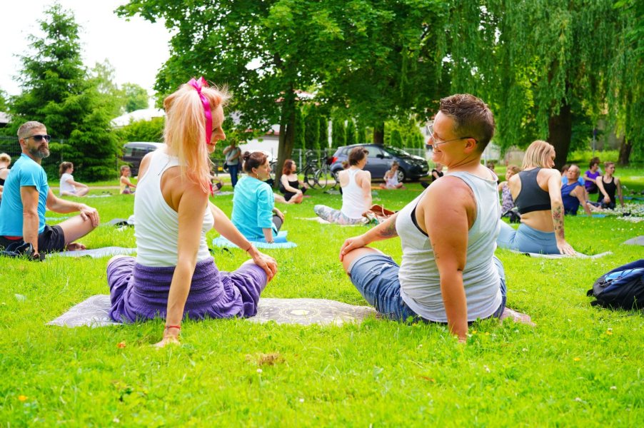 Monika Duszkiewicz przeprowadziła serię ćwiczeń oraz opowiedziała o jodze. - Jest ona adresowana do wszystkich – przekonywała. - Nie liczy się wiek, płeć, ani stan zdrowia, a jedynie chęć poprawy jakości swojego życia.