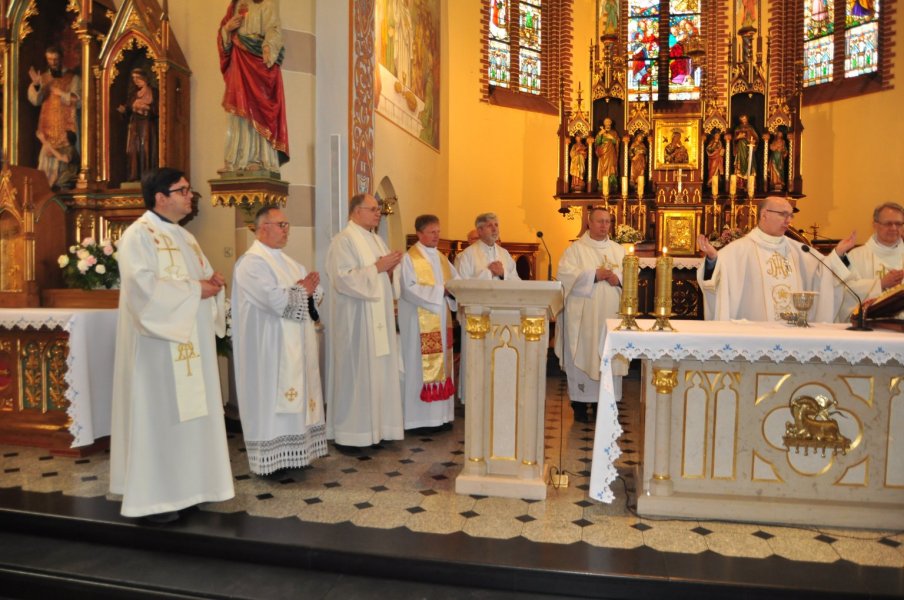 Aż czterech księży z naszego powiatu świętowało w poniedziałek, 24 maja, 30-lecie święceń kapłańskich. To ksiądz Andrzej Preuss (Szczytno), ks. Roman Lompa (Jedwabno), ks. Jacek Bacewicz (Szymany) i ks. Norbert Bujanowski (Lesiny Wielkie). 30-lecia nie dożył ks. Mirosław Lango (Spychowo). Gospodarzem uroczystości był proboszcz parafii pw. Wniebowzięcia Najświętszej Maryji Panny ks. Andrzej Preuss. Do Szczytna zjechali niemal wszyscy duchowni z rocznika święceń naszych księży. Łącznie było ich 24, jest wśród nich nawet biskup Janusz Ostrowski.
