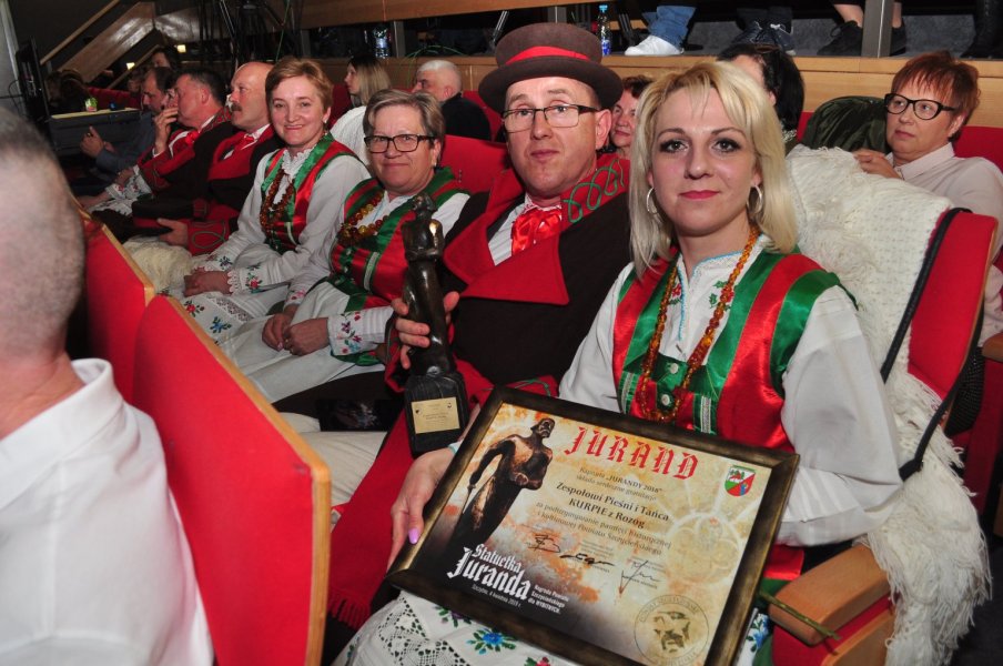 Statuetkę przyjęli: kierownik Zespołu Pana Romuald Kaczmarczyk, Bożena Drózd oraz Justyna Drężek.