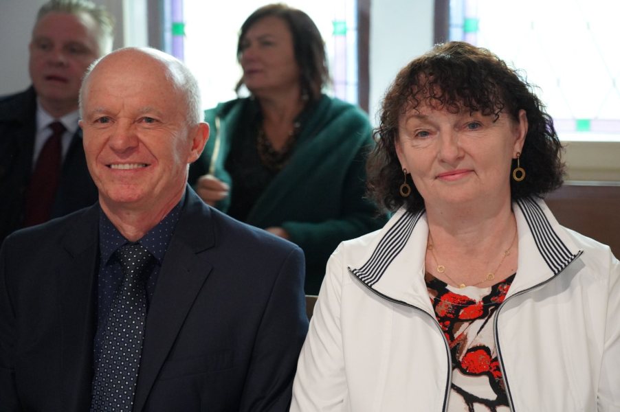 Wspominając dość burzliwą historię baptyzmu na naszej szczycieńskiej ziemi, wymienialiśmy imiona i nazwiska duszpasterzy, starszych i innych duchowych liderów, którzy w przeszłości tworzyli historię naszego zboru. Większość z nich już nie żyje, ale odczuwaliśmy wielką radość, goszcząc byłych pastorów: prezbitera Jana Mroczka z małżonką Eugenią - służyli jako rodzina pastorska w latach 2000-2008 - oraz prezbitera Janusza Niwińskiego z małżonką Małgorzatą, którzy tworzyli wraz z dziećmi rodzinę pastorską w latach 1990-2000. Z wdzięcznością słuchaliśmy ich wspomnień oraz życzeń kierowanych do nas w czasie uroczystości.