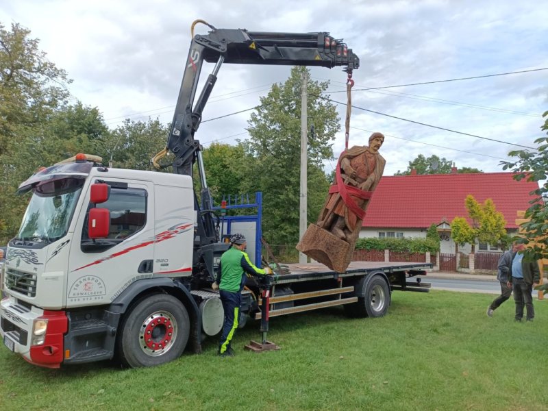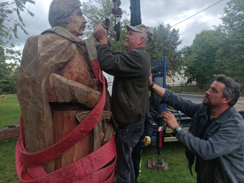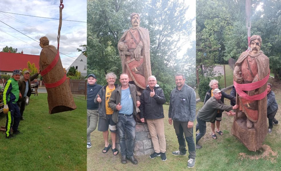 Do Spychowa wrócił nowy Jurand - drewniany stanął na cokole przy amfiteatrze. Tym razem nie było orszaku, rycerzy i radosnej gawiedzi, ale paka ciężarówki, transportowe pasy, wiertła, fizyczna siła i trochę… gimnastyki z bezwładnością.