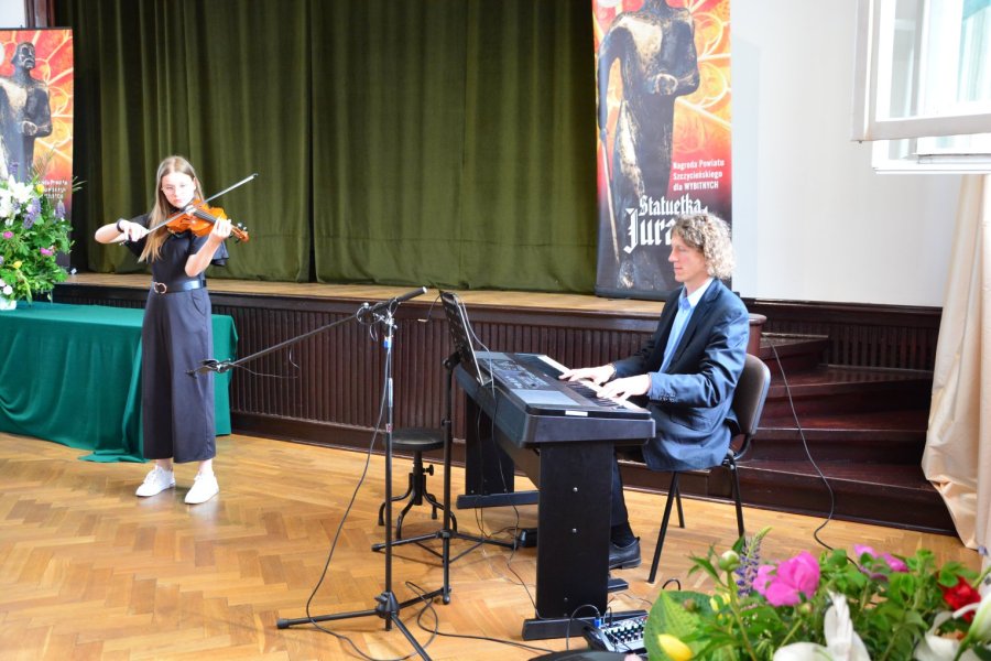 - Tegoroczna, zaległa gala miała charakter zamknięty – wyjaśnia starosta. - Zostali na nią zaproszeni tylko laureaci wraz z osobami towarzyszącymi. Wszystko odbyło się w pięknie udekorowanej auli, przy okrągłych stolikach, dźwiękach muzyki w wykonaniu uczniów szczycieńskiej szkoły muzycznej i pokrzepiającym poczęstunku, jak zawsze perfekcyjnie przygotowanym i podanym przez uczniów i uczennice naszego „gastronomika”. Myślę, że ta oficjalna uroczystość w kameralnym wydaniu, ale w towarzysko-rodzinnej atmosferze, spodobała się naszym gościom.