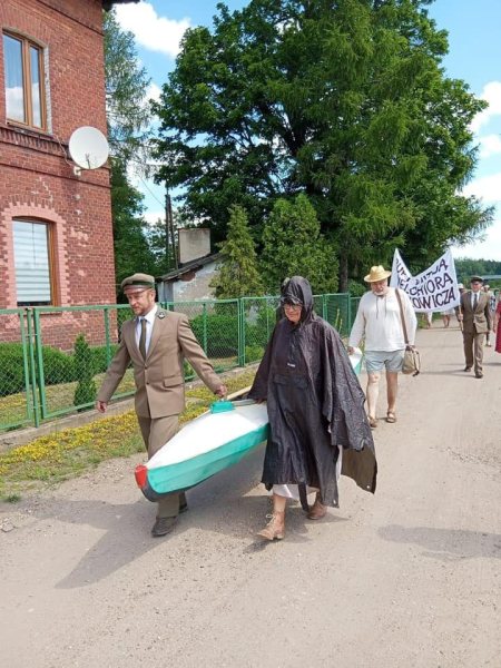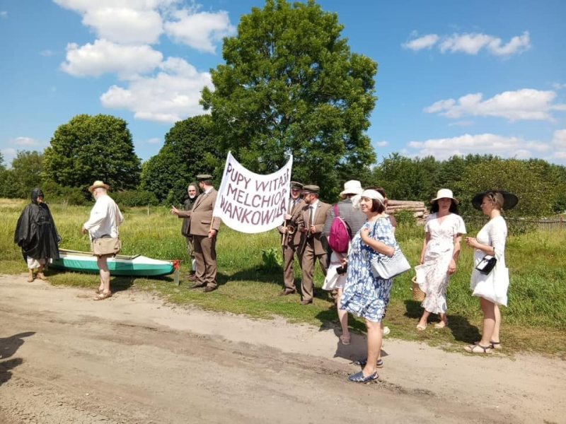W czwartek, 27 czerwca, dokładnie 89 lat po tym, jak Melchior Wańkowicz rozpoczął swoją wodną wyprawę z córką, mieszkańcy Szczytna i goście uczcili ten historyczny moment. Rano, ubrani w stroje z epoki, zebrali się na stacji PKP w Szczytnie. W pociągu do Spychowa, dawnych Pupach, czytali pasażerom fragmenty dzieła Wańkowicza "Na tropach Smętka", przywołując ducha tamtych dni.