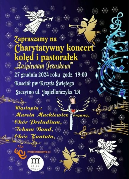 W piątek, 27 grudnia o godzinie 19:00 w Kościele pw. Krzyża Świętego w Szczytnie zabrzmią kolędy i pastorałki. Ale to nie tylko muzyka – tego wieczoru chodzi o coś więcej. Charytatywny Koncert Kolęd „Zaśpiewam Jezuskowi” to wydarzenie, które pozwoli połączyć przyjemność wspólnego śpiewania z realną pomocą potrzebującym.