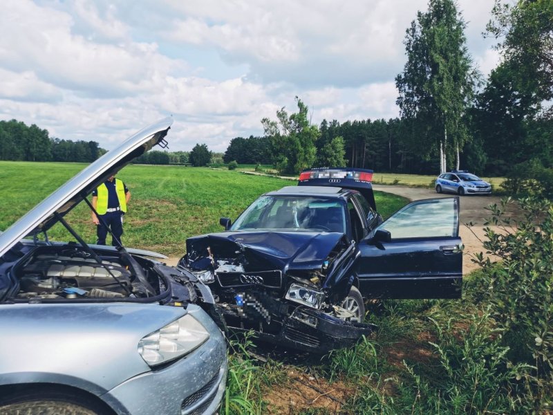 Wczoraj (19.07.21r.) około godz. 06:30 oficer dyżurny szczycieńskiej komendy otrzymał telefoniczne zgłoszenie o zdarzeniu drogowym, do którego doszło w okolicach miejscowości Antonia w gminie Rozogi. Ze wstępnych ustaleń funkcjonariuszy, którzy pracowali na miejscu zdarzenia wynika, że 46-letni kierowca Audi nie dostosował techniki i taktyki jazdy do panujących warunków drogowych, w wyniku, czego stracił panowanie nad pojazdem i uderzył w prawidłowo poruszający się pojazd marki VW.