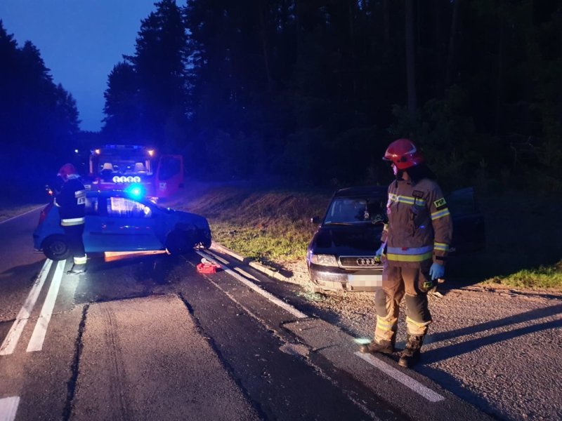 - Audi znajdowało się na poboczu na kołach, a fiat stał w poprzek drogi – mówi kapitan Paweł Kozłowski z KP PSP w Szczytnie. - Na prośbę policji punto ściągnęliśmy na pobocze jezdni.