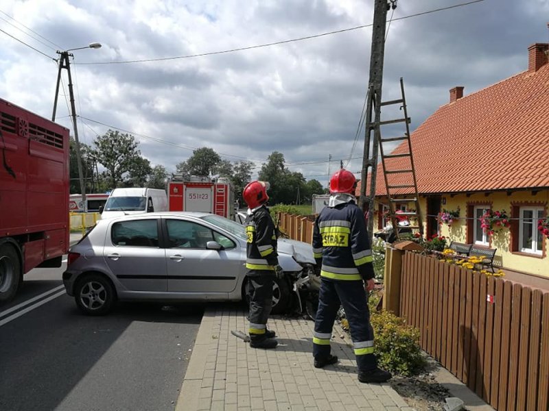 Gdy na miejsce wypadku dotarli ratownicy mężczyzna wciąż był w samochodzie. Jako pierwszy mężczyźnie pomógł strażak z OSP Pasym Kamil Rumiński, który akurat nadjechał na miejsce wypadku. 70-latek uskarżał się na ból w klatce piersiowej. Trafił do szpitala.