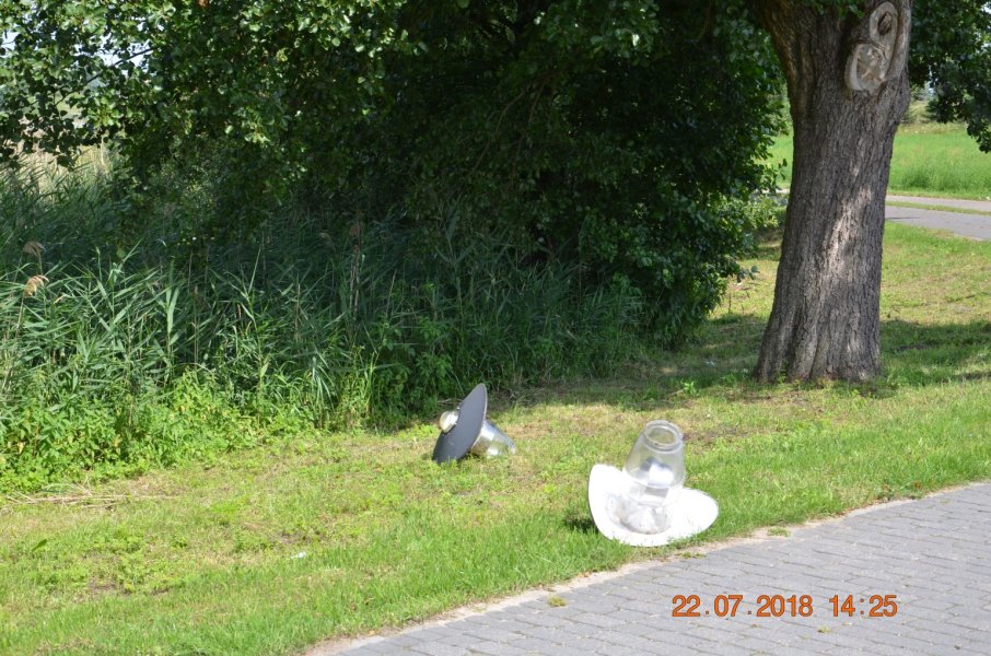 Też rano zgłaszałem dla policjantów uszkodzenie lamp oraz zablokowanie ścieżki rowerowej wielką belą siana z pobliskiego pola. Bela do południa była usunięta...lampy po 14 -tej jeszcze leżały.....